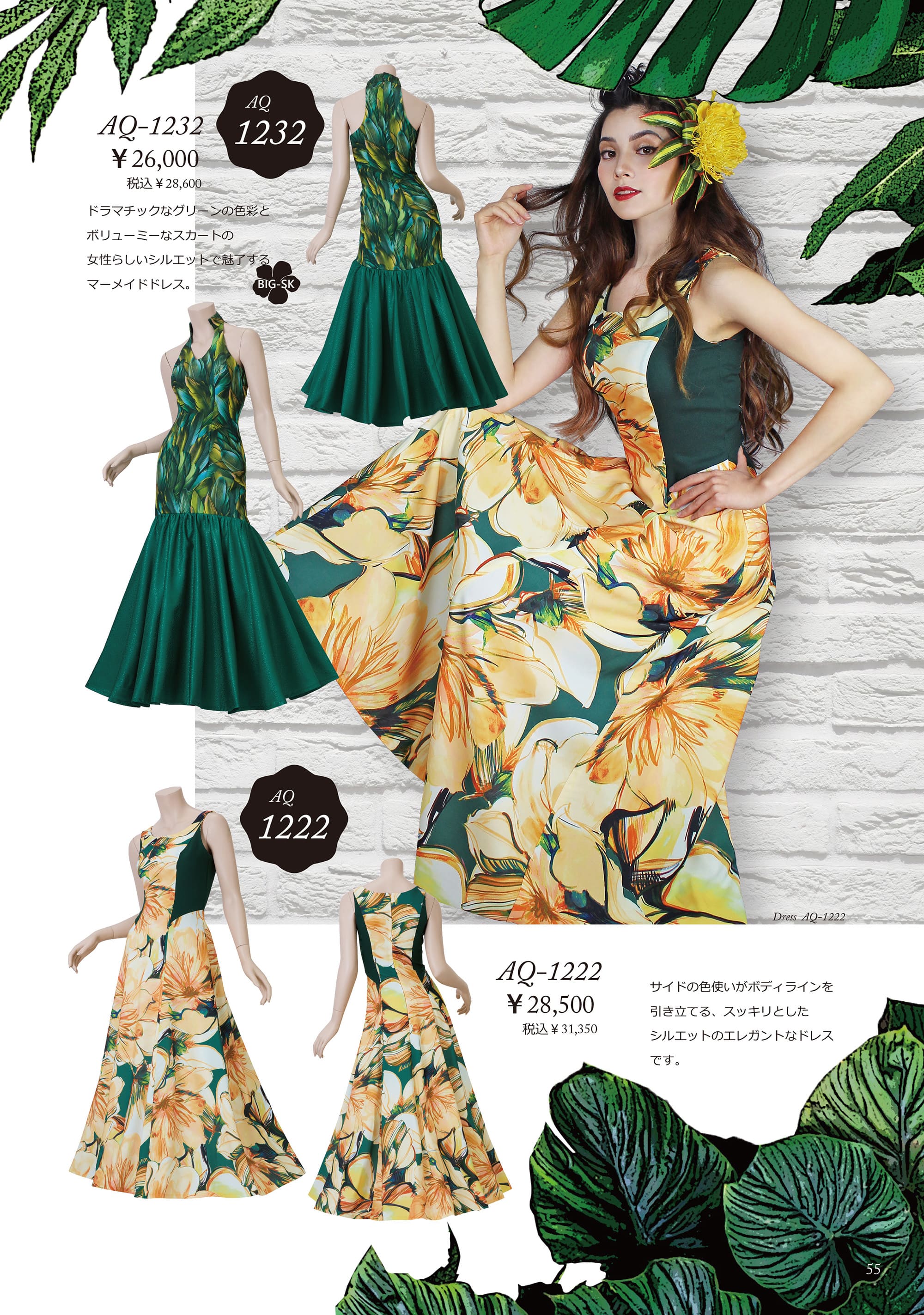 ビビットなイエロ-と伝統柄が映えるマ-メイドフレア-ドレス